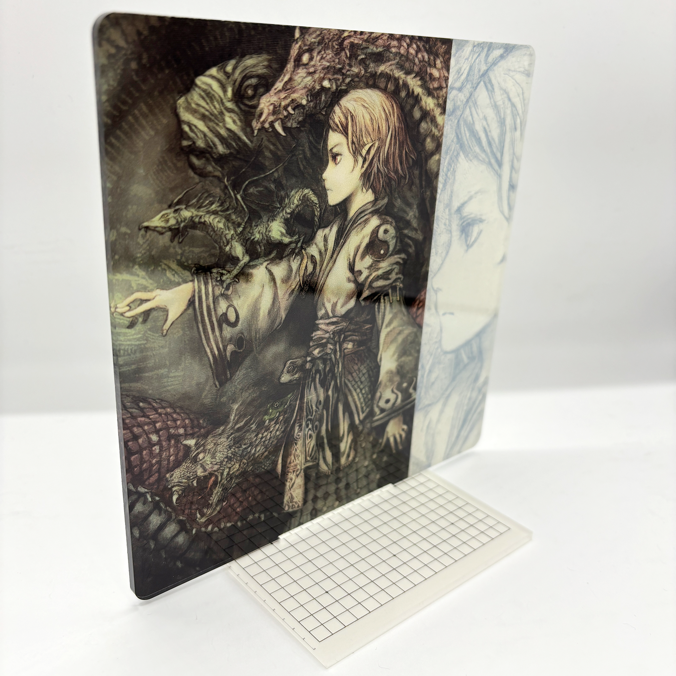 アクリルスタンドの台座は碁盤に見立てたものになっており(3枚目参照)、一つだけでも飾っても良し、対となる【対戦、黒】と並べても良しの作品になっております。