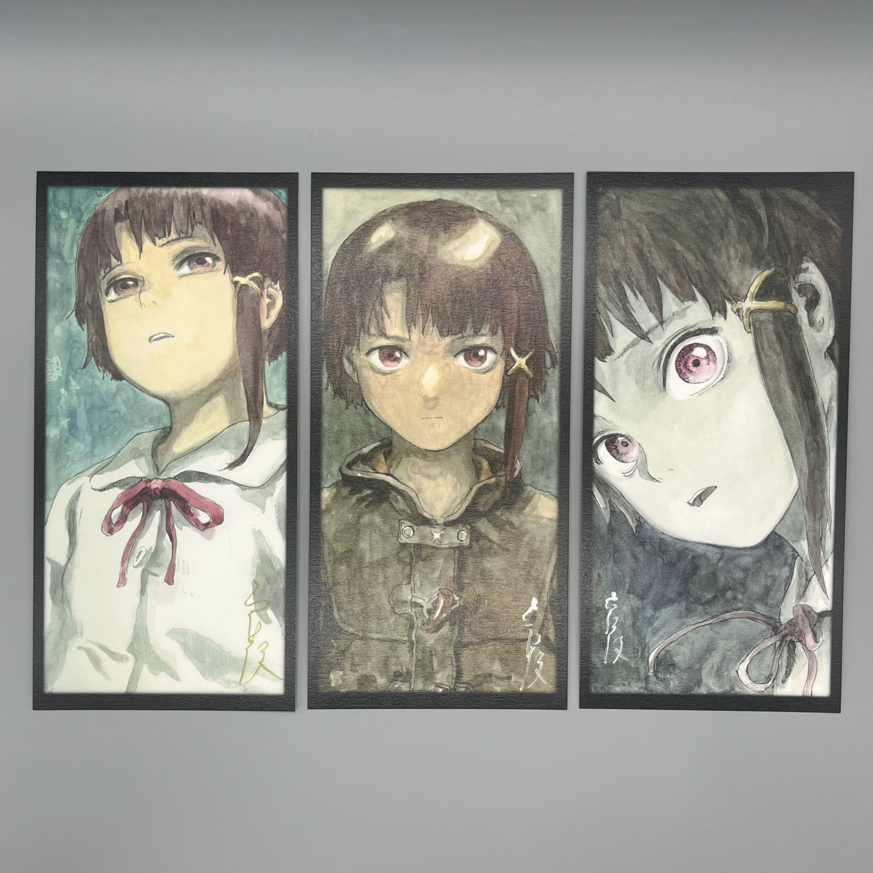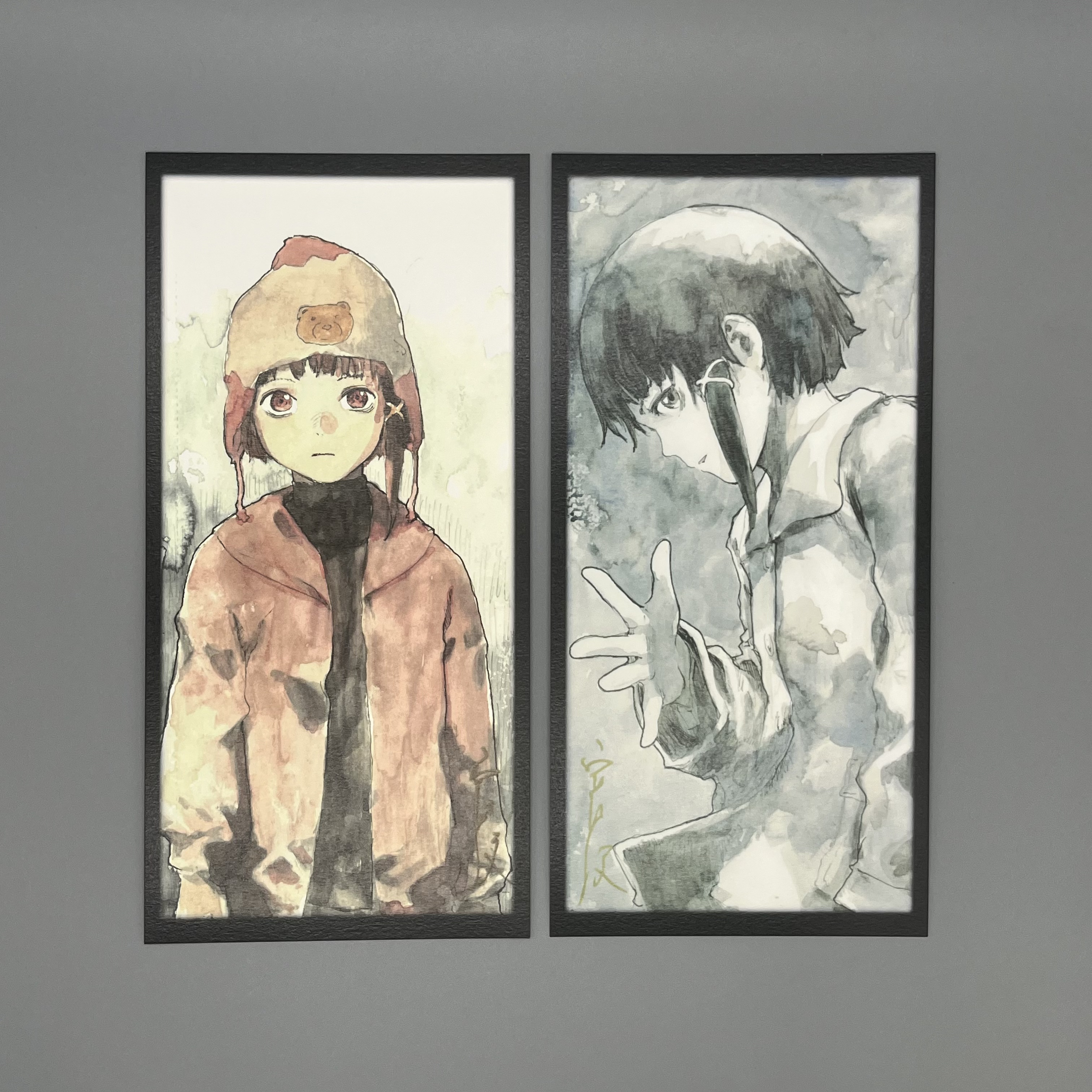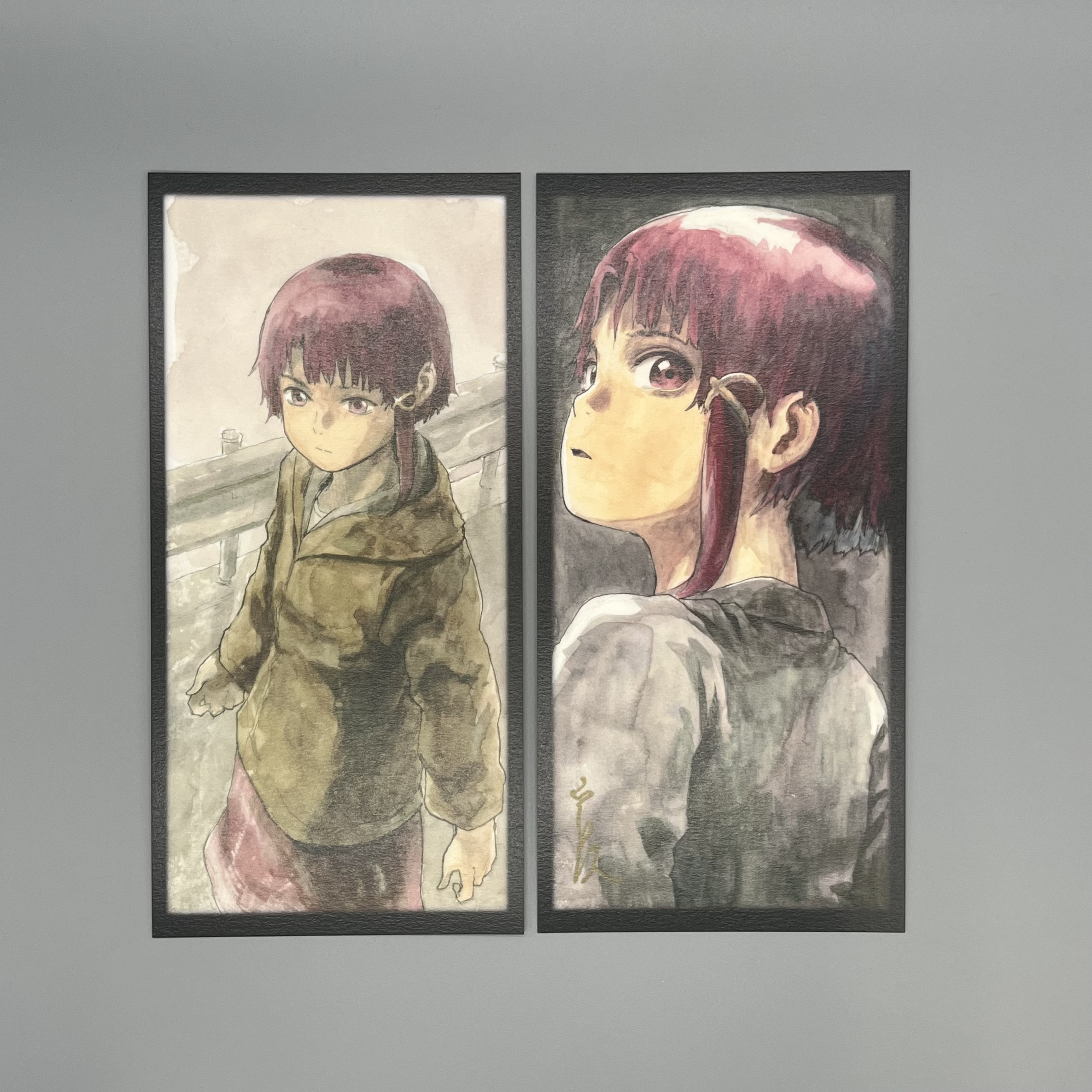 個展で展示をした、lainの水彩画のイラストシート全8種。
